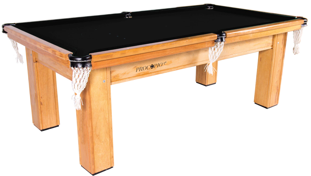 Descrição: Tampo em pedra ardósia, estrutura do caixote da mesa em madeira maciça, jogo de caçapas em courvin com redes, tabelas confeccionadas com borracha prensada em "L" (como nas mesas profissionais), tecido em acrílico, acabamento em verniz. Imagens meramente ilustrativas.